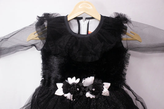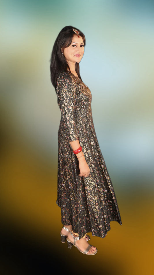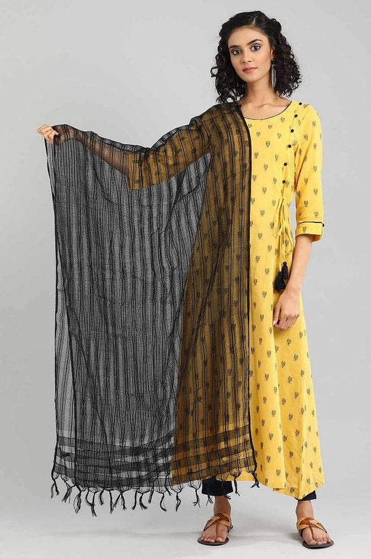 BIBA BLACK COTTON FLARED PRINTED DRESS